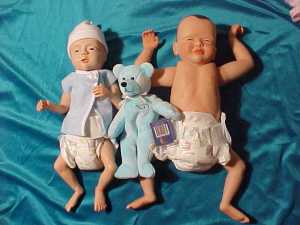 Doll replicas of a 26 and 32 week old baby born premature.